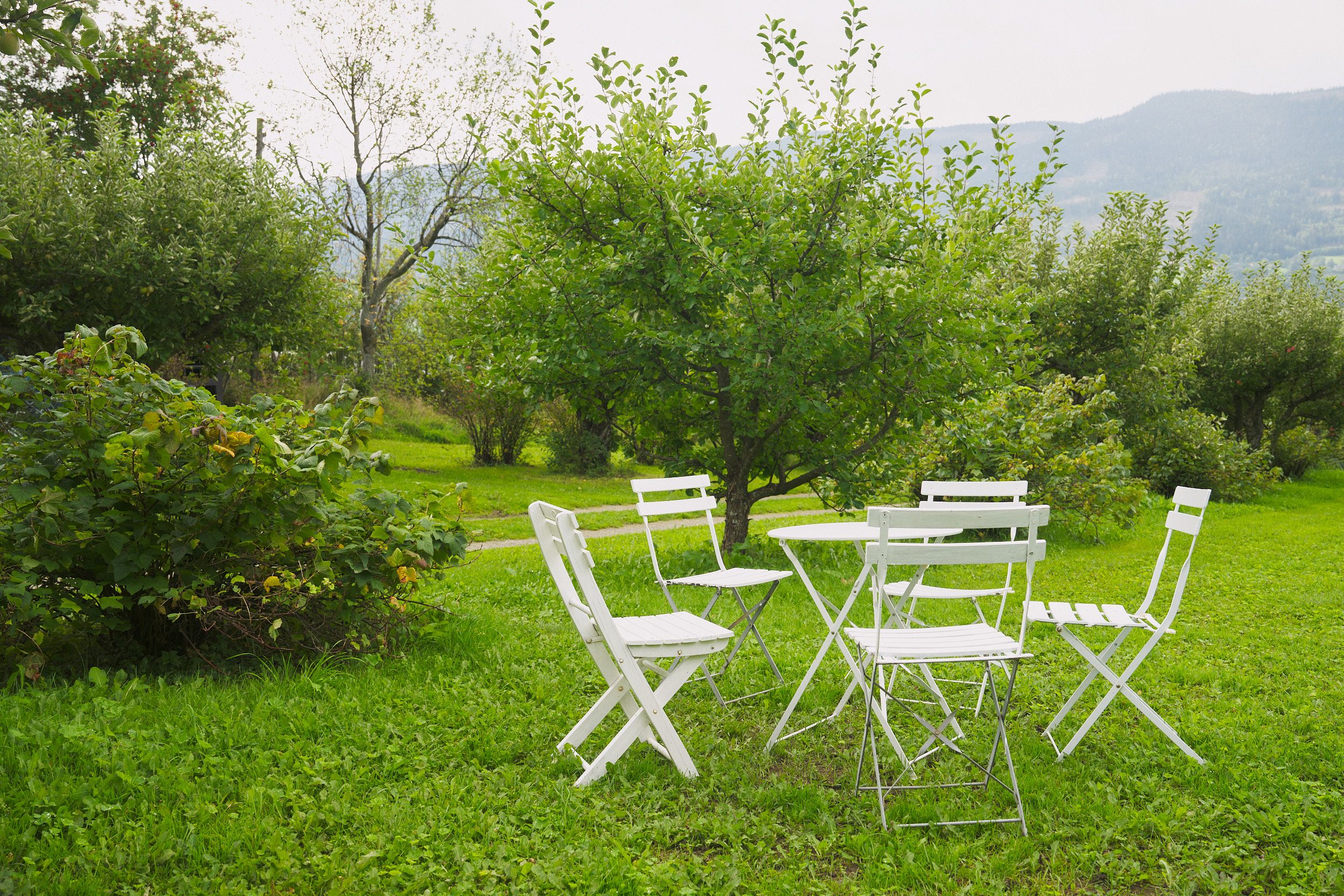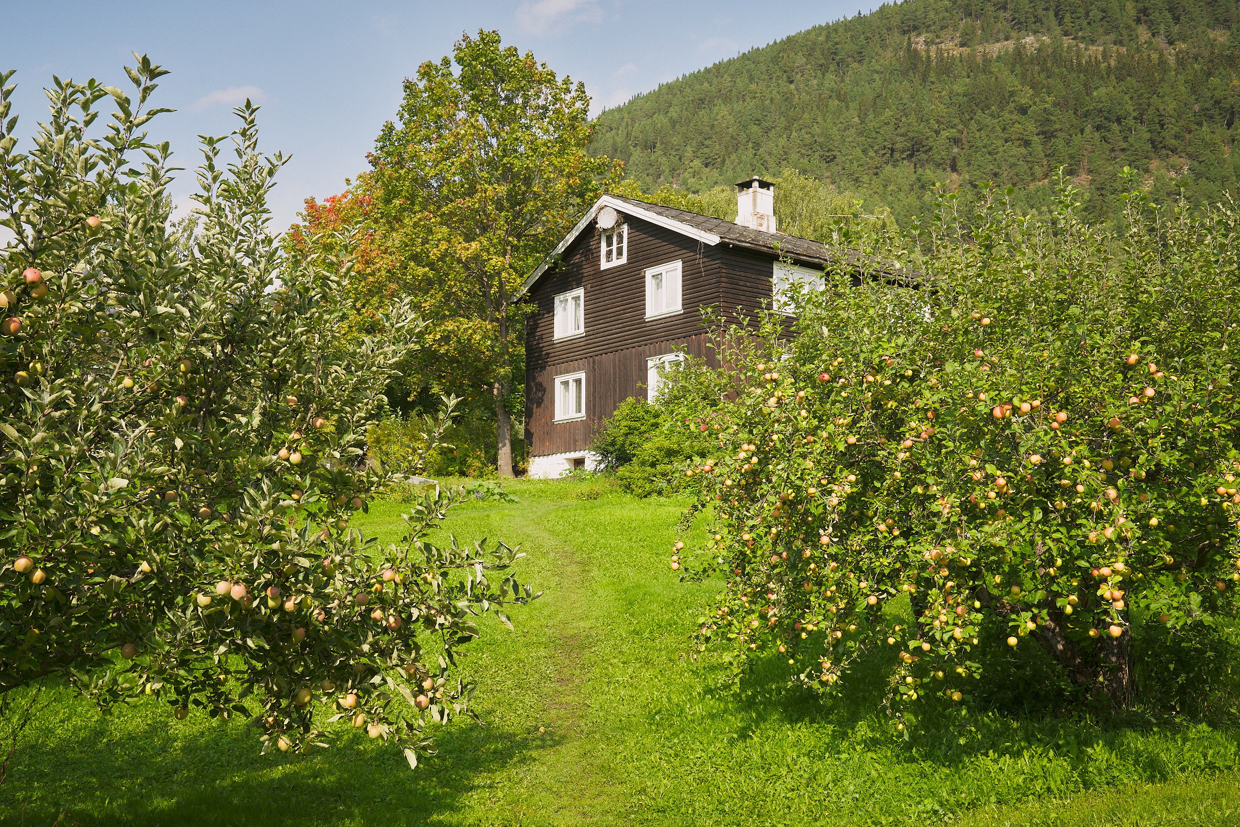 I den vakre eplehagen tilbyr Ragnhild og Johan overnatting i sjarmerande små campinghytter, eller du kan campe ved marknadshagen.